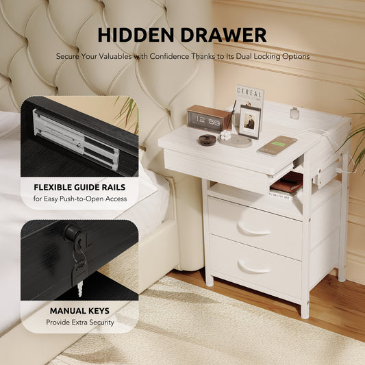 Modern Nightstand with Drawers Bedside End Table with Charging Station & Sliding Top