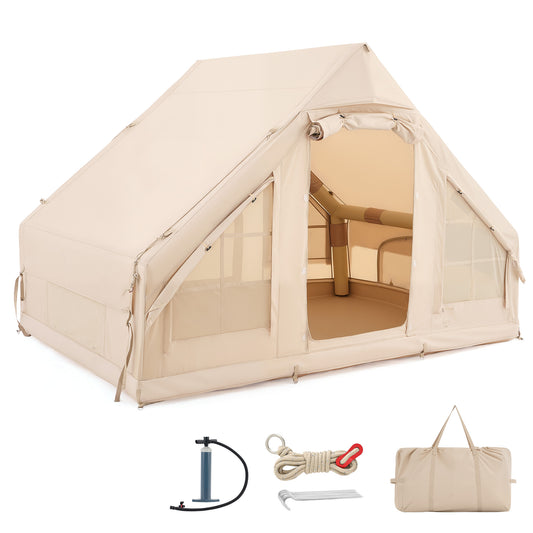 4-6 Person Inflatable Camping Tent - 4 Season Waterproof Glamping Shelter w/Air Pump