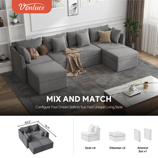 Modular Couches and Sofas Sectional 4 Seat U Shaped Sofa w Storage Ottoman, Dark Gray